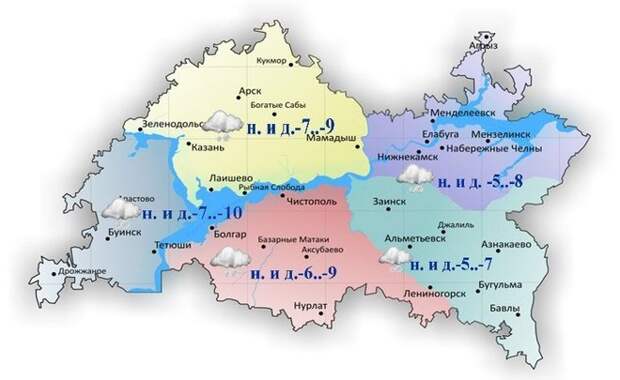 Сегодня в Татарстане ожидается облачная погода, днем с прояснениями, согласно данным Гидрометцентра РТ. Максимальная температура воздуха днем составит -5..-10 градусов. На дорогах гололедица, местами сохранятся снежные заносы. Временами на территории республики пройдет снег, местами метель. Ветер западный, северо-западный умеренный до сильного, местами порывами до 15—18 м/с.