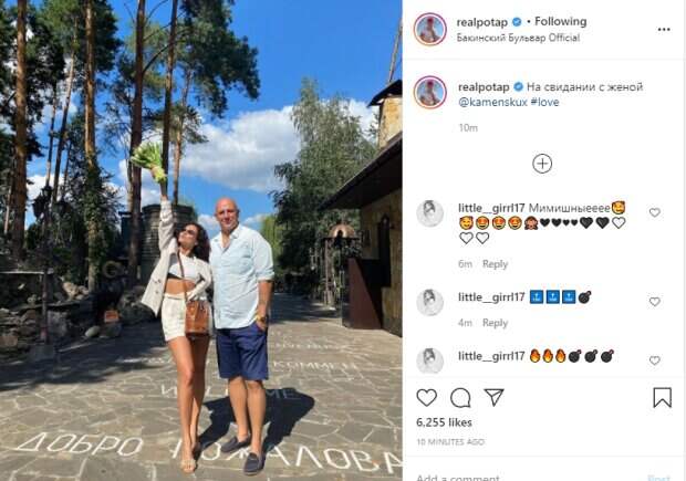 "На свидании с женой", - объяснил рэпер в описании. Из геолокации становится понятно, что музыкант вытащил свою супругу в ресторанный комплекс "Бакинский бульвар" под Киевом. Для такого мероприятия знаменитая пара нарядилась довольно просто, по-летнему. Настя Каменских надела короткие белые шорты, туфли и белый топ, поверх которого набросила курточку. Потап же выбрался на свидание в синих бриджах, туфлях и нежно-голубой рубашке. Пользователи социальной сети дружно восхитились отношениями Каменских и Потапа, подарив им много комплиментов в комментариях: "Самая красивая пара
