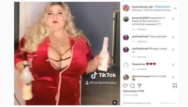 Так, несколько часов назад модель похвасталась ярким видео. Инна Горячковская показала видео, где трусит своими пышными формами, в кружевном белье черного цвета и ремешками, которыми приукрасила пышную грудь. Кроме того, она надела поверх красный шелковый халатик, который сел как влитой и подчеркнул аппетитные округлости звезды, искусно скрыв все несовершенства. Она сделала традиционный яркий мейкап с акцентом на глаза и четко очертила контур губ, накрасив их любимой помадой красного оттенка. Инна пританцовывает, пьет бутылку алкогольного напитка и в упор всматривается в объектив фотографа. Пользователям сети очень понравился танец обворожительной красавицы, засыпав ее комплиментами: "Такая красивая", "Божееееее !!!! Какая же Вы классная и аппетитная женщина !", "Пышно построенный замок изгибов очаровывает гламуром пухлостью красивостью с вкусными кремовыми беседками