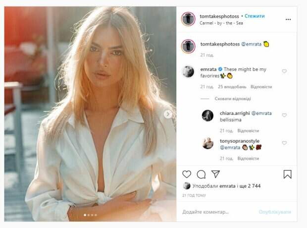 Известная модель и начинающая актриса Эмили Ратаковски после смены имиджа показала смелый образ На фото Эмили показывает себя в белой рубашке, которую задрала, чтобы завязать. Красавица дополнила образ распущенными волосами, которые на так давно покрасила, и позировала на фоне яркого солнца, поэтому прямо светилась на снимках.
