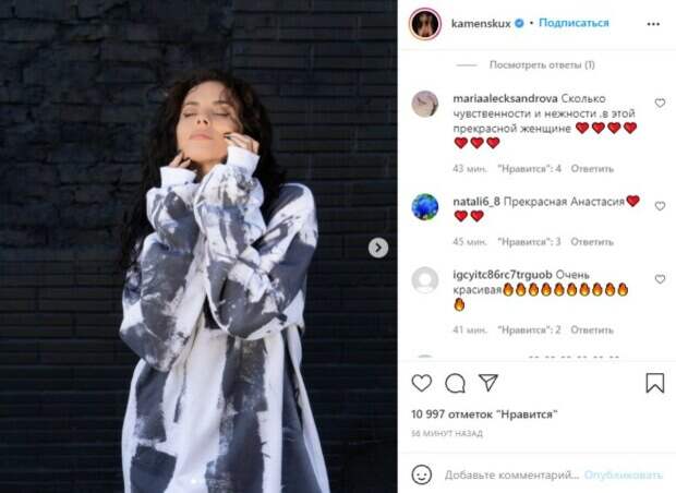 Украинская певица Настя Каменских показала новые снимки из отдыха на выходных Артистка каждый день ведет Инстаграм, стараясь рассказывать о жизни. Причем звезда делает это довольно активно и даже перед концертами записывает видео для фанатов. Чтобы привлечь внимание, теперь Каменских достаточно просто показать свой новый наряд.