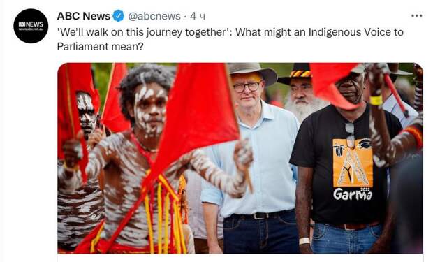 Должен быть создан орган, который будет называться Голос аборигенов и жителей островов Торресова пролива. 2. Голос аборигенов и жителей островов Торресова пролива может делать представление парламенту и исполнительному правительству по вопросам, касающимся коренных народов и жителей островов Торресова пролива. 3. Парламент, в соответствии с настоящей конституцией, имеет право издавать законы, касающиеся состава, функций, полномочий и процедур Голоса аборигенов и жителей островов Торресова пролива. Перед изменением конституции правительство планирует провести референдум и подготовило вопроса для него: «Поддерживаете ли вы изменение конституции, которое учреждает Голос аборигенов и жителей островов Торресова пролива?» Премьер-министр Австралии пообещал решить этот вопрос как можно скорее. «Мы пройдем этот путь и вместе добьемся успеха», — заявил Альбанезе на фестивале Гарма. Весь этот процесс начался со встречи представителей аборигенов со всей страны на Национальном конституционном съезде коренных народов в 2017 году. 250 делегатов от коренных народов встретились в Улуру и после нескольких дней дискуссий достигли консенсуса по заявлению из 440 слов, которое стало известно как «Заявление Улуру от всей души». В нем указаны три ключевые цели, которые аборигены назвали «Голос в парламенте», «Договор» и «Истина». В заявлении упоминается референдум 1967 года, который изменил конституцию, включив аборигенов и жителей островов Торресова пролива в списки населения, и дал федеральному правительству полномочия принимать законы для коренных австралийцев в штатах. Отметим, что новый премьер-министр Австралии в ночь выборов начал свою победную речь с того, что заявил, что полностью привержен «Заявлению Улуру от всей души». Читайте также: Лидер Австралии анонсировал референдум по «голосу» аборигенов в парламенте