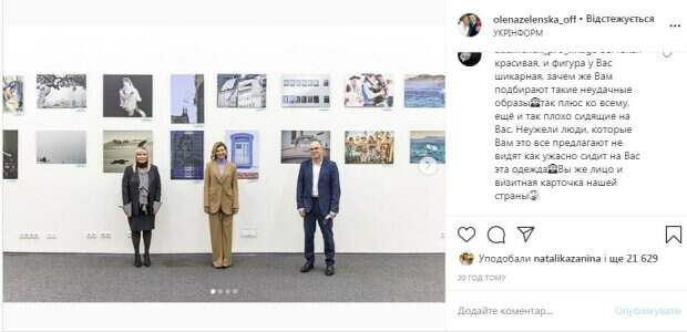 «Штаны один ужас», «Ленку одевает Кошевого жена???», «Костюм с ассистента сняли?», «Леди... Обнять и плакать...», «Кто одевает жену президента? У неё явно талант! Талант, одень девушку с идеальной фигурой, чтобы выглядеть так глупо ( извините за откровенность)», «Ленка опять в "одежде старшей сестры"? Позорище», «Ну что это за наряды? Никакого вида. Все же молодая и красивая женщина. Как так можно одеваться?», «Срочно поменяйте стилиста для Елены!!!», «Красивая молодая женщина, с прекрасной стройной фигурой! Смело можно сказать "девушка"! Ну кто же её так уродует?! Специально, что ли?», «Вы такая красивая, и фигура у Вас шикарная, зачем же Вам подбирают такие неудачные образы», "Єто костюм Юзика", - пишут в комментариях. В то же время нашлись и те, кому наряд первой леди понравился. «Красивая первая леди! И одеваетесь Вы непринужденно в европейском стиле. Молодец! Так держать!», - похвалили Зеленскую. Напомним, Елена Зеленская ошеломила внешним видом, такой первую леди еще не видели: "В спортивках и..." Как сообщала Politeka, Елена Зеленская неожиданно призналась украинцам в своей зависимости: «Правда в том, что…». Также Politeka писала, что Елена Зеленская впервые после тяжелой болезни вышла на связь, удивив видом: "К сожалению. ..".