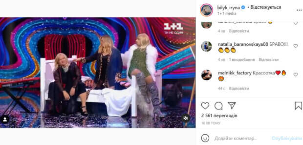 В этот раз Владимир Дантес и Юрий Ткач из «Квартал 95» пародировали Ирину Билык, которая также является судьей. Билык не устояла и присоединилась к ним. В результате тройка артистов устроила яркое шоу на кровати, исполняя песню Билык «Снег». Остальные судьи с удовольствием подтанцовывали им. «Ну что, смотрели @maskarad_1plus1? Ну как вам?», - подписали видео авторы аккаунта. В комментариях зрители стали оставлять свои отзывы о шоу. «Смотрели! Это вау! И смешно, и неожиданно», «Огонь», «Вам пора открывать аккаунт на онлифанс, потрясающая», «Браво», «Невероятная женщина», - пишут пользователи сети. Напомним, что Билык поразила подарком для своей фанатки прямо со сцены: "Эмоции переполняют". Как сообщала Politeka, Билык в эпатажном наряде вскружила голову молодому артисту: "Следующий муж?". Также Politeka писала, что Ирина Билык в черном обратилась к поклонникам: "Я без ума от вашего внимания".
