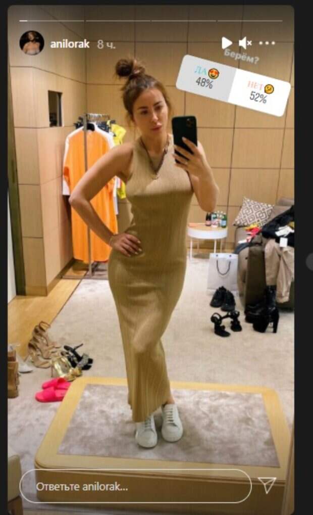 Певица Ани Лорак выставила новое фото, спросив мнение у публики, о чем, наверно, уже пожалела Как передает Politeka.net, 42-летняя звезда опубликовала свежий снимок в "сториз" у себя в Инстаграм, на котором предстала в гардеробной. Так, на заднем фоне на вешалках висели наряды, а внизу была расставлена обувь.