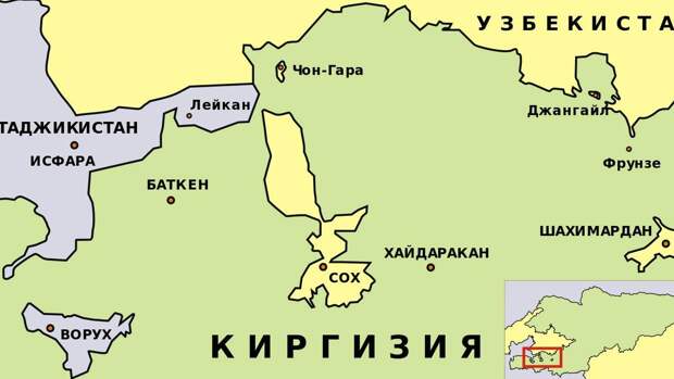 30 гектара и 0,75 гектара земли в селе Самаркандек», — сообщает пресс-служба. Общеобразовательные школы рассчитаны на 330 мест. Они будут построены в селе Самаркандек Баткенского района и селе Маргун Лейлекского района Киргизии. Напомним, у Узбекистана четыре анклава в Киргизии — Шахимардан, Чон-Гара (Северный Сох), Сох и Джангайл. Сох является крупнейшим узбекским анклавом на территории Киргизии. В анклаве проживает 60 тыс. человек, при этом 99% его населения являются таджиками. В районе действуют 28 общеобразовательных школ, 3 профессиональных колледжа, а также две больницы. После ряда пограничных идцидентов в 2013 году Сох обнесли колючей проволокой. Население занимается в основном подсобным сельским хозяйством. Последний крупный конфликт произошел 31 мая из-за споров о том, какой стране принадлежит родник. Анклав Чон-Гара состоит из двух деревень Чон-Гара и Калача. Рядом с территорией анклава находятся нефтегазовые месторождения, принадлежность которых оспаривают и Узбекистан и Киргизия. В анклаве проживает 52 тыс. человек, из которых 99% населения таджики, а 0,72% киргизы. Анклав Шахимардан в советское время считался престижным курортом, но после наводнения 1998 года и введения визового контроля число туристов резко сократилось. В 1999 году границы анклава были заминированы из-за активности исламистов. В 2004-м году парламент Киргизии поставил вопрос об отдаче Шахинардана Узбекистану, но переговоры так и не начались. В 2007 году было подписано соглашение, позволяющее гражданам обеих стран совершать в анклав безвизовые поездки на срок до двух месяцев. Численность населения анклава составляет шесть тыс. человек, из которых 91% таджики, а 9% киргизы. Анклав Джангайл или Северный Шахимардан является самым маленьким анклавом с территорией менее одного квадратного километра, находящимся в Баткентской области Киргизии. Он наиболее близко расположен к Узбекистану. Его население составляет несколько сотен жителей. Анклав от Узбекистана отделяет поле в полтора километра.