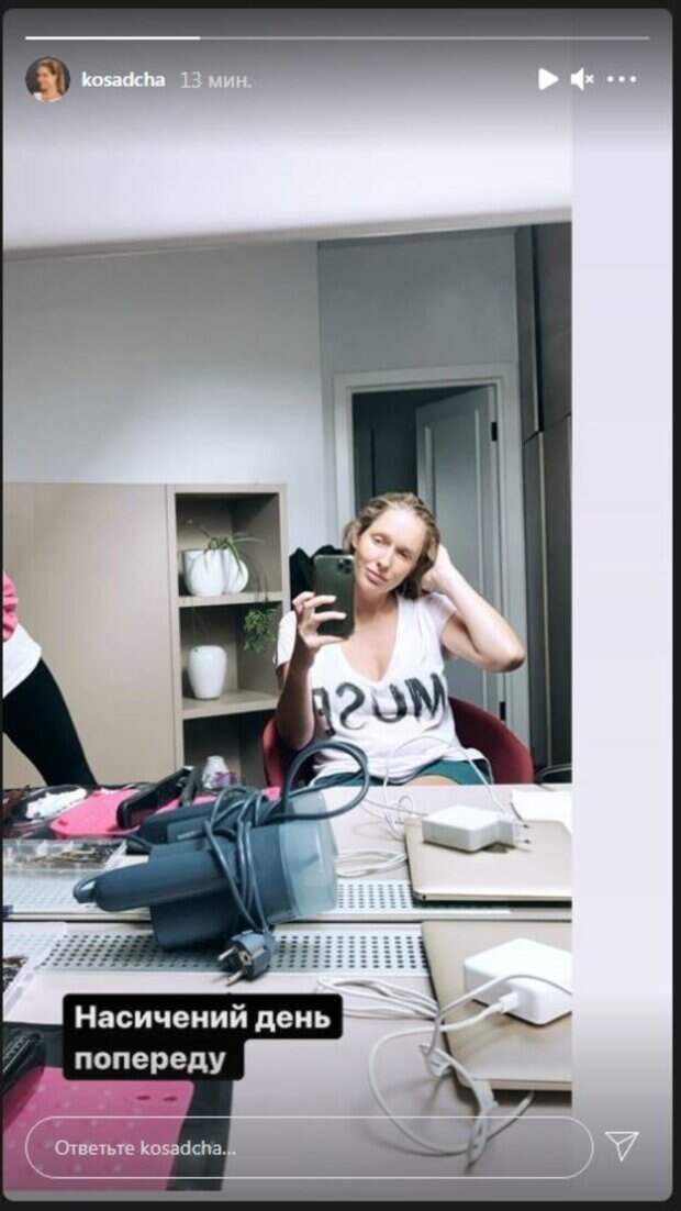 Счастливые родители поделились новостью о рождении ребенка в своих соцсетях, а позже стали делиться кадрами того, как активно работают. В своем новом сторис Осадчая рассказала о новом дне. Ведущая сделала селфи, наведя камеру на зеркало и показала, как выглядит после родов. На звезде была свободная майка с вырезом, а сама она - без макияжа и зачесала волосы назад. "Насыщенный день впереди", - написала украинская знаменитость. Стоит отметить, что Осадчая активно работала на протяжении всей беременности, давая себе передышку в теплых странах. Также звезда работала и во время своей предыдущей беременности. По ее словам, девять месяцев пролетели очень быстро, а ее сын еще до рождения побывал на самых важных мероприятиях и несколько раз за границей. К слову, сын Осадчей и Горбунова, Иван, родился в 2017 году. Напомним, Осадчая рассказала о своем "сумасшедшем" дне после родов Как сообщала Politeka, Осадчая после родов взбесила украинцев "новыми" губам Также Politeka писала, Осадчая поразила внешностью до популярности