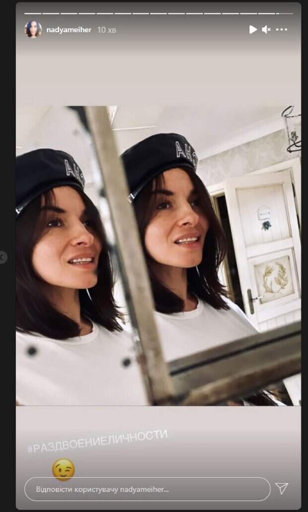 Не забывает Мейхер и о социальных сетях, где делится с фанатами самым интересным. На новом фото красотка позировала в фуражке, стоя у зеркала. Девушка улыбалась, хвастаясь роскошным образом. "Раздвоение личности", - написала Надя под фотографией. На второй фотографии Надя показалась в гольфах и платье с вырезам на бедре. Красотка залезла на стремянку и задрала ножку, впечатляя стильным образом для известного глянца. Фанаты не ставили лайки и не писали комментарии, ведь в сторис Инстаграм нет подобных функций. Напомним, экс-ВИА Гра Мейхер в обтягивающей майке заговорила о переезде А еще Politeka сообщала, что экс-ВИА Гра Мейхер в приталенном платье заворожила видом стройной фигуры Также Politeka писала, что Брежнева похвасталась люксовыми апартаментами в Турции с бассейном и террасой