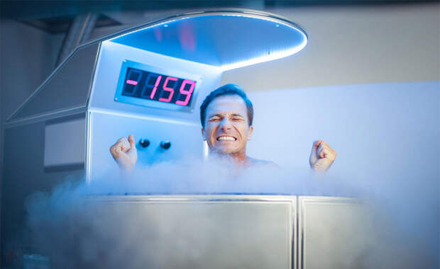 Долгое время от боли местно применяли холод. Отныне он используется повсеместно: все тело заперто в кабине, в которой рассеивается очень холодный и очень сухой воздух, температура которого опускается до -150 C, на 2-3 минуты. Кроме того, существует риск переохлаждения и ожогов. Воздействие сильного холода на организм В условиях сильного холода внешняя температура кожи падает с 34 C до 5-7 C, а внутренняя температура тела снижается на 0,5-1 C.