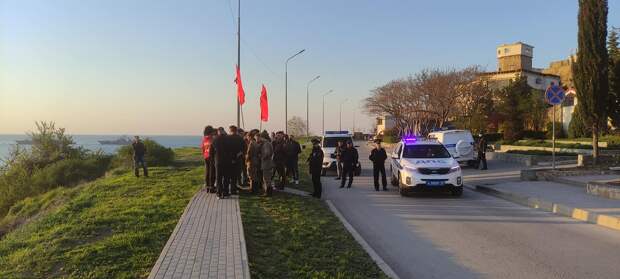 Полиция в Севастополе отсекла группу молодых людей с красными флагами и в головных уборах-буденовках, которые намеревались вечером в четверг провести акцию протеста против открытия монумента примирения участников Гражданской войны. Потешные большевики после переговоров по телефону (очевидно, с руководством местной ячейки КПРФ) от попыток прорваться к месту церемонии отказались и ограничились фотографией для отчета на фоне памятника, передает корреспондент «ПолитНавигатора».