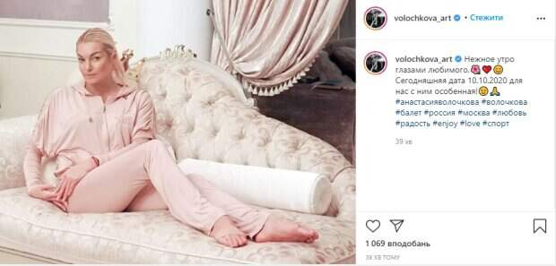 net. В утро субботы балерина не удержалась от новой порции загадок, опубликовав снимок себя любимой в пудрово-розовом наряде на диване. В домашнем брючном костюме она сидит на софе, положив руки на бедро и внимательно смотря в камеру. «Нежное утро глазами любимого.