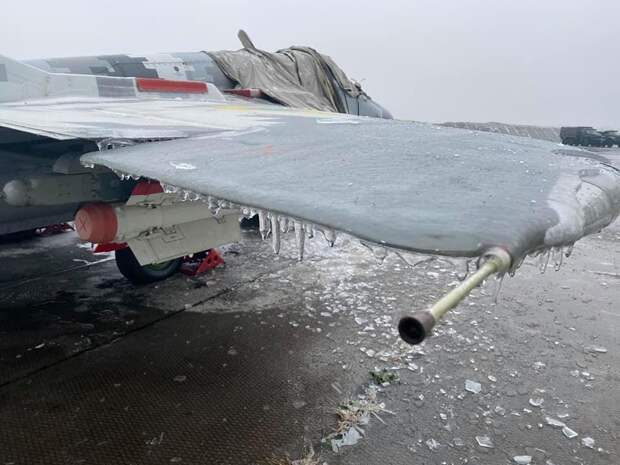 Из-за непогоды в Украине в одной из частей тактической авиации Воздушных Сил ВСУ обледенели самолеты. Об этом сообщается на странице MilitaryAviation.in.UA в Facebook. "Где-то грустит на морозе трудяга МиГарь "24/7 combat ready", с которого даже чехол оторвать невозможно. В ВС ВСУ до сих пор не знают что такое ангары", - говорится в сообщении.