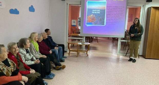 Психолог Людмила Баркова провела занятие в клубе «Активное долголетие» в Лобне. Она подготовила презентацию, посвященную счастью и осмысленному существованию человека.