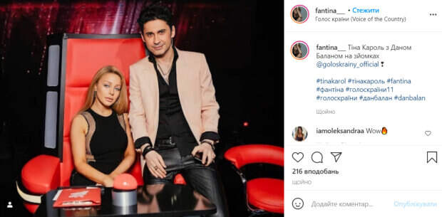 Певица была одета в черное платье с блестящими вставками. Она выглядела необычно из-за серебристых глаз, которые ей сделали стилисты. Волосы красотки были распущены. Дан Балан был одет в джинсы, черную рубашку и светлый пиджак. Он сидел рядом с артисткой и искренне улыбался. «Тина Кароль с Даном Баланом на съемках», - подписали фото авторы аккаунта. В комментариях оставили несколько отзывов о паре. «Самые красивые», «Вау», «Красивая пара», «Они очень хорошие», - пишут поклонники. Как известно, на протяжение двух сезонов вокального шоу Тина Кароль и Дан Балан подогревали интерес к своим персонам, постоянно флиртуя друг с другом. В сети ходили слухи, что между звездами роман, но сами артисты тщательно избегали разговоров на эту тему. Стоит отметить, что для поклонников шоу стало разочарованием отсутствие в кресле тренера Дана Балана. Однако продюсеры, похоже, решили побаловать фанатов и пригласили музыканта на съемки. Напомним, что Тину Кароль застали врасплох прямым вопросом о романе с Даном Баланом, реакция поражает: "Берегись...". Также Politeka писала, что Тина Кароль проговорилась, что у нее на самом деле было с Даном Баланом: "Я еще не отошла...". А еще Politeka сообщала, что Тина Кароль задрала ноги выше головы и возбудила фантазии видом без белья: "Сошла с ума".