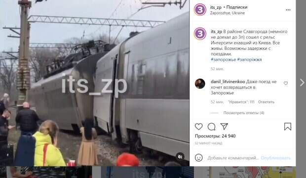На железной дороге возле Запорожья с рельсов сошел пассажирский поезд Как передает Politeka.net, кадры с места ЧП публикуют очевидцы в соцсетях (чтобы посмотреть - доскролльте страницу до конца) Инцидент произошел днем, 29 марта. "В районе Славгорода (немного не доехал до Зп) сошел с рельс Интерсити ехавший из Киева.