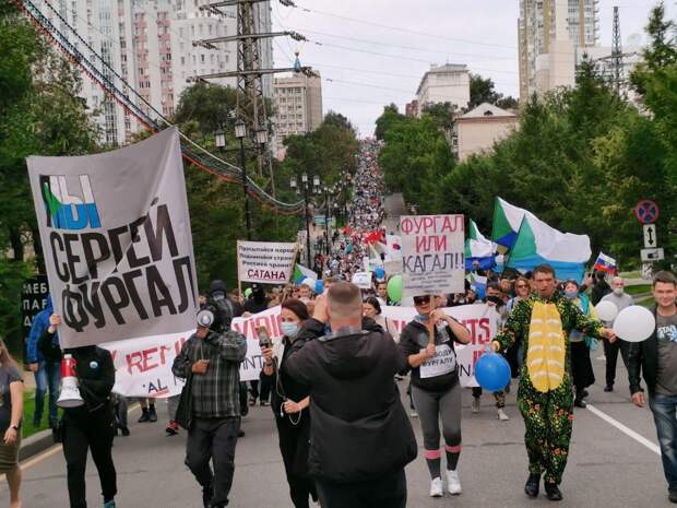 На улицы вышли, по оценкам мэрии, около 1200 человек. Можно сказать, что с каждым разом протесты собирают всё меньше и меньше людей. Все это объясняется банально – надоело. На митинги сейчас в основном ходят или самые верные последователи хабаровского губернатора, или, как бы не хотелось признавать, проплаченные профессиональные «протестувальники». Конечно, есть процент и тех, кому любое движение в радость – поговорить, пройтись по улицам. С такой же радостью они бы посещали и акции в защиту амурских тигров или митинги против карантина.
