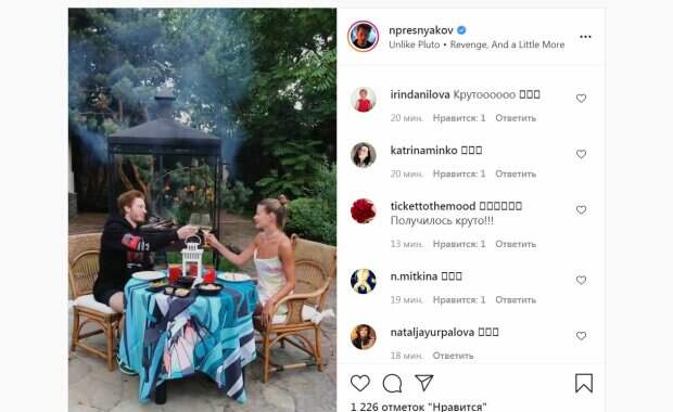 Внук певицы Аллы Пугачевой, музыкант Никита Пресняков, показал, как проводит отдых с женой Уже несколько лет Никита Пресняков женат на московской модели Алене Красновой, пишет Politeka.net. Артист нередко делится кадрами отдыха с супругой. Так, в новом видео в Инстаграм Пресняков показал, как он ужинает с Аленой.