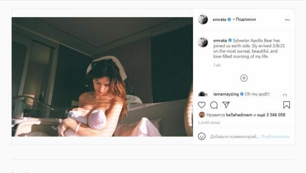Модель натянула крохотные трусики на тонкой резинке чуть выше бедер. Плоский рельефный животик просто завораживал взгляд и приносил море впечатлений. Видно, что Ратаковски много времени проводила в спортзале. Также модель была в белых кроссовках. Она распустила длинные пышные волосы, уложив их на одно плечо. Красивое украшение на шее стало дополнительным акцентом образа. Звезда смотрела в камеру, широко распахнув глаза. Кадр за пять часов собрал несколько десятков лайков и немного комментариев. Ранее мы писали, что Эмили Ратаковски, будучи беременной, также баловала фанатов откровенными снимками в обнаженном виде. А на днях звезда сообщила, что родила сына от своего мужа Себастьяна Беар-МакКларда. Модель показала ребенка и сообщила его имя - Сильвестр Аполлон. Хотя это мальчик, модель в одном из интервью рассказала, что позволит ребенку самостоятельно выбрать себе пол. "Люди намного сложнее, и их определяют не гениталии», — думает модель. Таким образом, точная гендерная принадлежность будет известна со временем. Напомним, жаркая Ратаковски забыла о лифе и показала, как начинается ее утро в постели с красавчиком: "Оголила свой..." А еще Politeka писала, что Эмили Ратаковски сжала свои аппетитные "малышки" тесным топиком Также Politeka сообщала, что соблазнительная Ратаковски без белья разрешила заглянуть в свое бездонное декольте