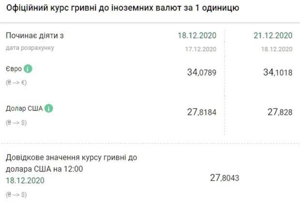 Евро также сегодня подорожает, и это будет ощутимее. Гривна потеряет 2,29 пунктов. Курс валют в Украине 21 декабря будет выглядеть следующим образом: 100 долларов – 2782,8 грн; 100 евро – 3410,18 грн. Российский «деревянный» воспользуется ситуацией, коварно отобрав у гривны несколько позиций. Валюта страны-агрессора сегодня будет стоить 0,38112 грн. До этого мы приводили прогноз на предстоящую неделю от экономиста Максима Пархоменко. По его словам, "американец" будет продолжать расти, а о недавном падении можно смело забыть. Причиной укрепления гривны специалист назвал активизацию нерезидентов, которые понесли валюту в обменники для скупки ОВГЗ. Согласно прогнозу, доллар подорожает до 28,15 грн. Также мы рассказывали, что в государственном бюджете на 2021 год заложен курс доллара в Украине на уровне 29,1 грн. Кабинет министров согласовал этот показатель с Национальным банком. Напомним, украинцы бросились скупать валюту, в НБУ сделали важное заявление о курсе гривны. Как сообщала Politeka, гривна отправила доллар в нокаут, НБУ поразил новым курсом валют: какие цифры ждать в обменниках. Также Politeka писала, что доллар нанесет удар по гривне: каким будет курс валют и нужно ли бежать в обменники.