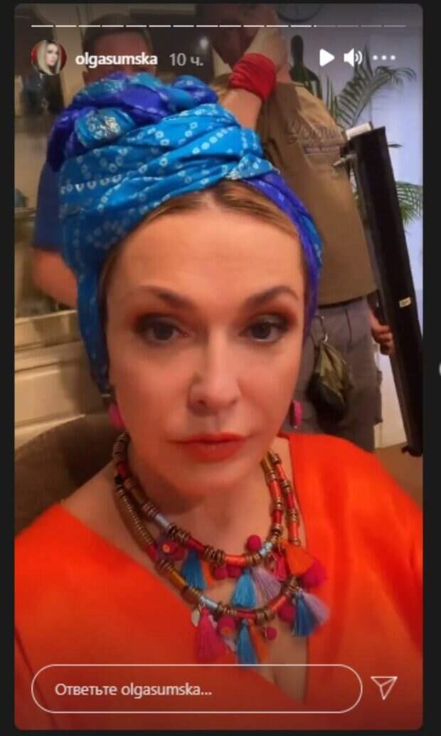 Актриса Ольга Сумская обескуражила новыми кадрами, показав утомительную ночь, которую провела без своего супруга Виталия Борисюка Так, 54-летняя звезда сейчас снимается в новом проекте. В свежих "сториз" у себя в Инстаграм Ольга засветила, что происходит в перерывах, передает Politeka.net. Сумская с платком на голове поразила яркими костюмами и забавными моментами.