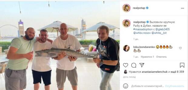 Занятость, тем не менее, не мешает Потапу хорошо отдыхать в свободные минуты. Артист привык, что дома у них с Настей часто присутствуют друзья и родственники. После развода с Позитивом, лучшая подруга Насти стала часто появляться в гостях у друзей. Вчера звезда провели целый день вместе и хвастнули домашним вечером в кругу близких. Потап решил разбавить атмосферу посиделок жены и подруги Анны, поэтому спел им, играя на гитаре шутливую песенку "Сладкий пирожок", которую сам выдумал. «Пора на "Голос країни"; однозначно; причём дуэтом с кумом. Две гавайские гитары - Гарбунович и Потап» - отшучиваются фанаты под постом. Ранее мужчина показал, как отдыхает в Дубае и активно делится интересным контентом с фанатами в Инстаграм. На фото Потап показался в белой футболке и шортах. Рядом можно увидеть друзей Алексея, которые вместе с исполнителем держали огромную рыбу. "Выловили крупную Рыбу в Дубаи, назвали ее massadoption", - написал Потапенко под фотографией. "Обалдеть", Ого, рыбка", "Кто кого еще поймал", "Ha Моргенштерна чем-то похожа)))", "Там же и посадят тебя за рыбу, зря афишируешь", - ответили фанаты. Напомним, Потап показал себя с неожиданной стороны, поразив черно-белым фото А еще Politeka писала, что Потап засветился с мускулистым другом на яхте в ОАЭ Также Politeka сообщала, что Потап в золоте и бриллиантах от Каменских озадачил украинцев новым фото