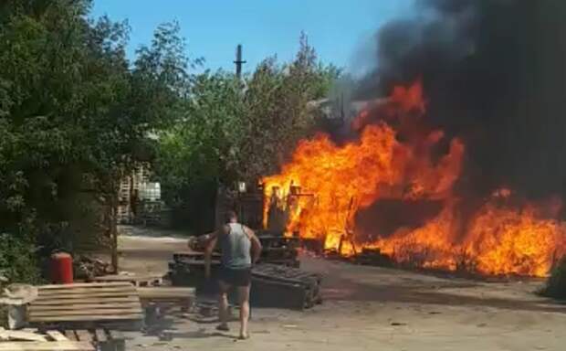 Деревянные поддоны под навесом загорелись на складе, продающем такую продукцию в Ханинском проезде, 33 в тульском поселке Мясново. Об этом Тульской службе новостей сообщили очевидцы и прислали видео пожара в редакцию. На кадрах видно, как сотрудники склада пытаются спасти оставшуюся продукцию, лежащую неподалеку от места возгорания.