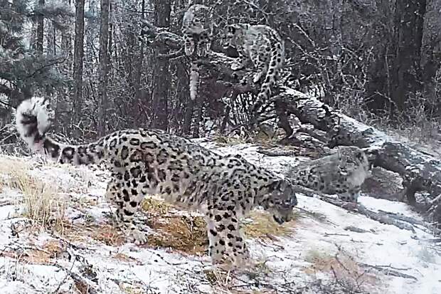 На юге Красноярского края в объективы фотоловушек попала новая семья ирбисов. Популяция снежных барсов пополнилась тремя малышами.