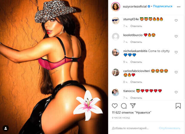 Сьюзи всячески подчеркивает ягодицы провокативными нарядами и в этот рай ей удалось поразить. Все дело в том, что Кортез надела соблазнительный розовый лиф с кружевами, черное бикини из кожи и надела трендовые брюки, которые специально оголяют ягодицы и крепятся на талии тонким ремнем. При этом нижнее белье и сами брюки выполнены в едином стиле и с одной ткани. Девушка повернулась спиной к объективу, чтобы показать себя во всей красе, поэтому сразу же получила сотни отзывов в ответ. «Пастушка