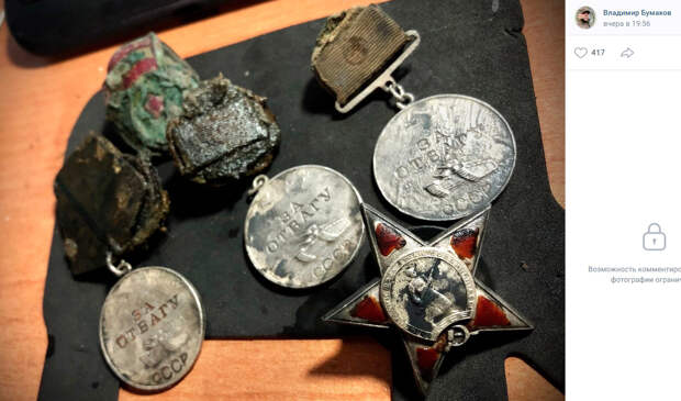 Останки нескольких советских воинов и их награды нашли поисковики в одной траншее в Себежском районе Псковской области, сообщает командир поискового отряда «Забытый батальон» Владимир Бумаков 20 ноября на своей странице в соцсети «ВКонтакте». «Всего три дня продлилась наша поисковая экспедиция на места кровопролитных боев 1944 года в Себежском районе, и вот ее результат, благодаря которому теперь мы уж совершенно точно установим имена сразу нескольких поднятых нами героев Великой Отечественной и начнем поиск их родственников, чтобы сказать им, что их дедушка или прадедушка все-таки вернулся с войны», — написал Бумаков.