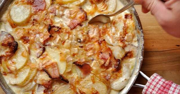 33 Существует огромное количество рецептов картофельных запеканок. Чаще всего для их приготовления идут в ход остатки картофельного пюре, что очень удобно для экономных хозяек. Но мы предлагаем вам использовать картофельные кружочки. Соус, под которым запекают картофель, очень похож на тот, которым заправляют пасту карбонара.