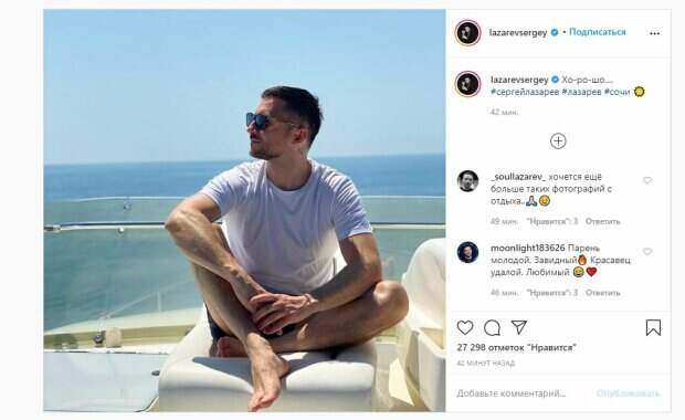 Фанаты поставили почти 30 тысяч лайков и написали множество комментариев: "Хочется еще больше таких фотографий с отдыха..", "Парень молодой. Завидный. Красавец удалой. Любимый", "Красивый как всегда..только футболка конечно лишняя", "Сергей Лазарев - самый лучший певец в мире!", "Смотрю ваши сторис, вы там такой классный", "Даа, сегодня на море чудесно!!!", "Ляпота". Ранее мы сообщали, что знаменитая артистка Ани Лорак засветилась в стильном виде во время "свидания" с близким другом и коллегой Сергеем Лазаревым. Несколько часов назад в социальной сети Инстаграм на своей странице Каролина показала, как повеселилась с близким товарищем и коллегой, Сергеем Лазаревым, с которым ей давно приписывают любовный роман вот уже несколько лет под ряд. Сообщалось, что 49-летняя российская телеведущая, бывшая пассия певца Сергея Лазарева Лера Кудрявцева изумила горячим пляжным образом. Звезда опубликовала свежее фото в своем микроблоге в Инстаграм, на котором предстала в голубом бикини и легком платье, небрежно запахнутом на талии, с декольте чуть ли не до пупка и разрезом внизу по самое-самое. Напомним, похудевшая Ани Лорак без стыда потрясла новыми формами в черном топе Также Politeka писала, что любовник Лорак Лазарев неожиданно воссоединился с мужем Тодоренко А еще Politeka сообщала, что подросшая дочь Ани Лорак превзошла по красоте звездных друзей