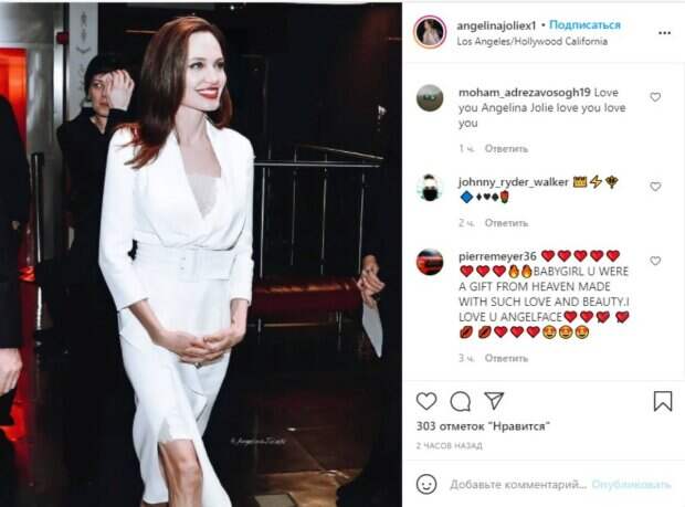 Одним из таких стал кадр с Джоли, позирующей в белом костюме с широким белоснежным ремнем и кофтой с кружевами, выглядывающей из декольте. Распущенные волосы, яркий макияж и даже сияющая улыбка не смогли скрыть истощенный вид Джоли. Тонкие колени и линия бедер, а также выглядывающие из-под юбки худые ноги озадачили сеть. Даже при удачном луке излишнюю худощавость знаменитость уже спрятать не может, что беспокоит фанатов. В целом, в повседневной жизни Джоли предпочитает не выделяться и всегда носит маску, а также одевается в костюмы в светло-серых и черных тонах. При этом Джоли считается иконой стиля, ведь благодаря ее любви к классической одежде, она всегда выглядит безупречно, пусть и не без таких моментов, как в этот раз. В то же время как многие утверждают, что внешность актрисы – дело рук пластических хирургов, Джоли ранее даже решила развенчать эти мифы. Звезда всегда подчеркивала, что стареть не боится, но с юных лет она действительно смотрит за кожей. Актриса использует санскрин, мягкое очищающее средство, продукты с антиоксиндтами, оксикислотами и натуральными компонентами. Ей не нужны скрабы и средства, в составе которых есть много химических веществ. «Солнечная красавица; я влюбляюсь; мне кажется, что таким взглядом подчиняют; настоящая высокая красота; это безумство какое-то, быть столь привлекательной и такой худой; привет, ты очень красивая; удобно наверное быть такой красавицей; уникальная дива, хоть и худая, вам бы поесть хорошо; она столь прекрасная, столь чудесна