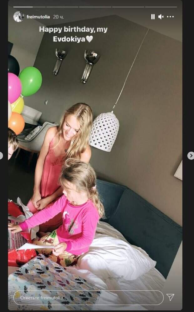 На фото, которые Оля опубликовала в сторис Инстаграм, можно увидеть как мама и дочь распаковывают подарки. Евдокия отвернулась от камеры, чтобы скрыть свое лицо. Фреймут стояла над малышкой. "С днем рождения, Евдокия", - написала Оля. На втором фото малышка была в халате уже. Девочка, как и на первом кадре, отвернулась от камеры. "Это спа-день", - отметила Фреймут на втором снимке. В следующем стори Оля уже снимала видео, на котором можно увидеть пляж, где отдыхало семейство. "С днем рождения, моя любовь", - написала телеведущая. На последнем стори девочка сидела в платье за столом у моря. Так как малышку снимали со спины, можно увидеть только красивые косички в виде сердечка. Напомним, Фреймут показала, как подросла ее младшая дочка, домашнее фото А еще Politeka сообщала, что Фреймут похвасталась старшей красоткой-дочкой на курорте Также Politeka писала, что Фреймут публично распекла Бибера и его жену-модель из-за внешности