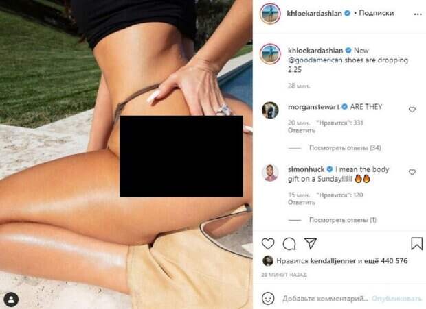 Известная модель Хлои Кардашьян показала себя, восхитив фанатов На фото Хлои позирует в топике и бикини, которое преимущественно состояло из ниточек. Модель сняла себя по бюст, сделав акцент на роскошных ягодицах, в которые впирался каблук обуви. Красотка добавила еще большей пикантности кадру, прижав "орешек" пальчиками руки, хвастаясь роскошным маникюром и кольцом.