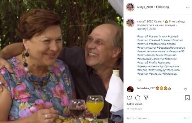 В ожидании седьмого сезона "Сватов" поклонники вспоминают самые яркие моменты сериала. Так на фанатской странице опубликовали сцену из четвертого сезона, в котором снялись Александр Феклистов и Татьяна Кравченко. По сюжету Валюхе пришлось сыграть Ольгу Николаевну, как возлюбленную Сан Саныча Берковича. Последний позволил себе немножко лишнего, за что едва не поплатился. Так во время застолья Беркович разошелся и с улыбкой до ушей полез обниматься со своей "невестой". Валентина Петровна не выдержала такого нахальства и осадила своего ухажера, сохранив верность мужу Ивану (его сыграл Федор Добронравов). Отдельного внимания заслуживает внешний вид героини, ведь она нарядилась, как на праздник: в яркое платье с цветочными узорами, бусы из разноцветных камней и массивные черные серьги. "Хочешь, чтобы все пальцы остались - руку убери", - с улыбкой предупредила она Сан Саныча, который тут же последовал ее словам. Пользователи восхитились удивительной игрой актеров и оставили много теплых отзывов в комментариях: "Татьяна Кравченко и Александр Феклистов живут, а не играют на экране. Как тяжело изображать чужую жену. И улыбка не естественна и движения неловкие. И Беркович явно не в "своей тарелке". Поэтому оба в этом кадре очень убедительны!,