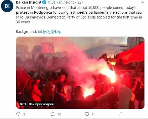 Предварительные результаты выборов в парламент категорически не устраивают местных жителей Об этом пишет Немецкая волна. Так, вчера вечером, 6 сентября, десятки тысяч человек вышли на массовые протесты в больших городах Черногории. Людей не устраивает, что по предварительным результатам выборов, которые состоялись неделю назад, большинство в Скупщине, а именно 41 мандат, получают оппозиционные и просерсбкие партии.