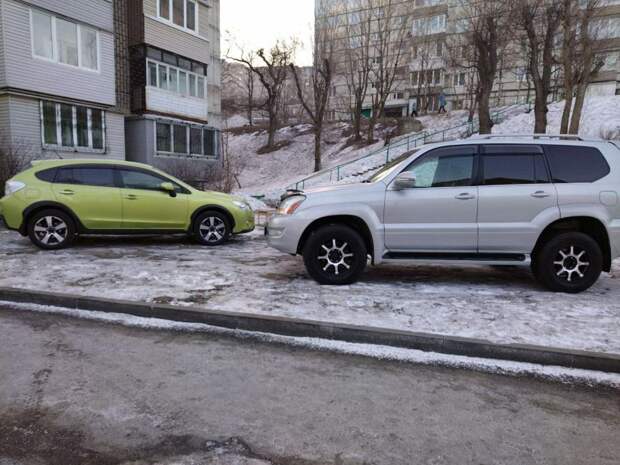 Водители Subaru и Lexus бросили свои машины на детской площадке