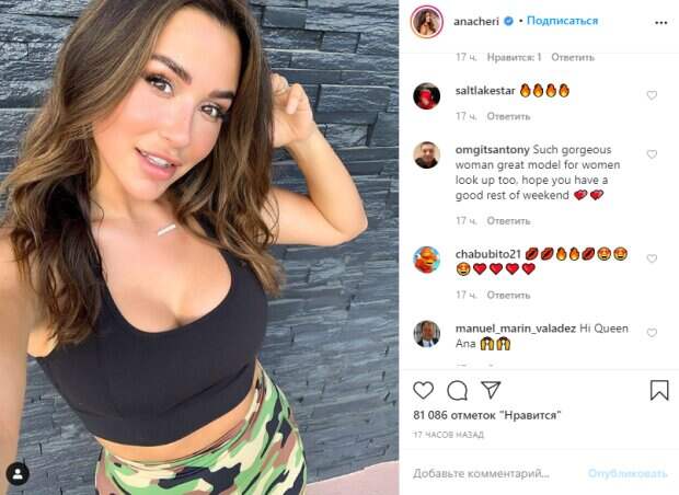 В этот раз стройная красотка в можном черном топе и спортивных лосинах решила заговорить о позитиве: «Привет всем, просто хотел прийти сюда и отправить позитивные мысли и любовь! Хороший друг только что прислал мне сообщение о том, что они любят меня, скучают по мне и надеются, что у меня все хорошо. Это сделало мой день, и я думаю, что если бы вы сделали то же самое с одним из ваших хороших друзей, это сделало бы их день таким же хорошим! Обратитесь к тем, кого вы любите, и распространите позитив! 🥰😘💛», - написала Ана под новым фото. Вот что ответили поклонники: «Так красиво, жарко. Упругое тело со всех сторон!», «Такая великолепная женщина, отличная модель для женщин, тоже смотрит вверх, надеюсь, вы хорошо отдохнете на выходных 💕💕», «Привет королева Ана 🙌🙌», «Горячая девушка для меня», «Linda😍😍😍», «Невероятный образ», «Самая шикарная мечта», «Такая соблазнительная Ана», «Можно больше таких фото?». Отметим, фитнес-модель родом из города Анахайм прославилась именно благодаря своим формам и упорству. Девушка стала популярна в Инстраграм после фото, которые начала делать, став фитнес-тренером. При этом сама Чери умеет привлекать внимание разными образами, поэтому девушка рекламирует не только спортивную одежду и специальные напитки. Также Ана появляется в модном белье и купальниках для стильных фотосессий. Недавно модель блеснула формами на уличных съемках в тонком кружеве, удачно подчеркнувшем ее стройное после тренировок тело. «Просто пытаюсь пережить это беспокойство. 💫 Позитивная энергия для вас!», - написала Ана под новым постом. Напомним, что знойная модель Ана Чери посветила своими "черешенками" прямо на столе: "Десерт готов!". А еще Politeka писала, Ана Чери в крохотном наряде изогнулась до неприличия: «Прикрой сейчас же!». Также Politeka сообщала, что роскошная Ана Чери показала, чем привлекает мужчин: "От напряжения корсет трещит".