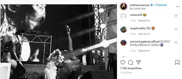 При этом она не выпускает из рук микрофон. «Молодчинка Миша, зажгла 🔥🔥🔥 хотя никто не сомневался.. Миша может все🔥🔥🔥», «Эта наша Миша😍», «Не удивлюсь, что будет сальто!! 💪😍💓👏💐🔥🙌», – пишут под публикацией. Ранее мы рассказывали, что Романова сверкнула невероятной красотой в присутствии шейха. На своей странице в соцсети она поделилась интересным фото, которое подписала лаконично: «Похитил шейх». Обратим внимание, что на опубликованном кадре Романова позирует рядом с шейхом, демонстрируя перед ним роскошный бюст. Также мы рассказывали, что артистка поделилась кадром с отпуска. Певица отдыхает в Одессе. Она позирует на матрасе у самого моря, одетая в обтягивающий купальник-боди оранжевого цвета. Наряд оказался настолько тесным, что "засветил" все пикантные подробности на теле красотки, а к тому же похож на обмундировку спасателей. В таком образе девушка переплюнула даже Памелу Андерсон. Напомним, что Миша Романова устроила смелую фотосессию топлес: чувственное фото. А еще Politeka писала, что Миша Романова, скрывавшая рождение ребенка, потрясла фото из роддома: "Будто другой человек". Также Politeka сообщала, что Миша Романова и Макс Барских наконец показали свои чувства: "Мутят, как Потап с Каменских"