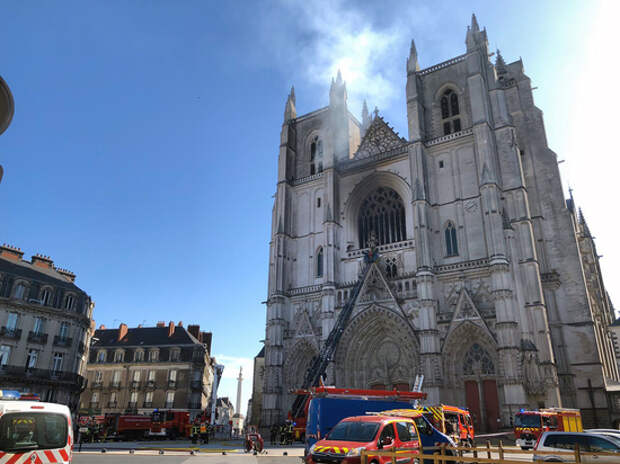 Пожар вспыхнул рано утром в субботу в готическом соборе во французском городе Нант. Это произошло чуть более года спустя после того, как огонь нанес серьезнейший ущерб знаменитому Нотр-Дам в Париже. фото: AP На место чрезвычайного происшествия к загоревшемуся собору Святых Петра и Павла прибыли около 100 пожарных в настоящее время находятся, сообщают местные СМИ.