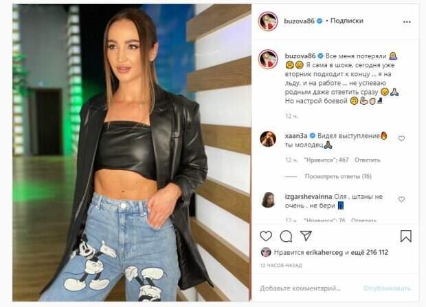 Фото вышло довольно свежим и интересным. Об этом пишет Politeka.net со ссылкой на страничку знаменитости. "Все меня потеряли. Я сама в шоке, сегодня уже вторник подходит к концу ... я на льду, и на работе ... не успеваю родным даже ответить сразу. Но настрой боевой", - написала звезда под фотографией. Фанаты поставили более 200 тысяч лайков и написали комментарии: "Видел выступление, ты молодец", "Оля , штаны не очень , не бери", "Оля,ты крутая,ты лучшая. Береги красивые свои ножки", "Ну, такое себе", "Джинсы отпад и сама Вы очень красивая и элегантная", "Оля вы Трудоголичка !!!!! Ты спишь стоя ?????? Чем вы там заряжаете и перезаряжаете?". Сообщалось, что российская певица и телеведущая Ольга Бузова рассказала о сложных этапах в жизни и буднях в целом. Девушка не так давно получила серьезные травмы коленей, но не остановилась и продолжает участвовать в шоу. Также Ольга старательно избегает темы отношений с Давидом Манукяном. Напомним, уставшая Бузова показала себя без макияжа и призналась в проблемах со здоровьем А еще Politeka писала, что Бузова с выбеленными волосами и в дерзком экстра-мини удивила переменами Также Politeka сообщала, что лохматая Бузова в ультракоротких шортиках раскрепостилась перед зеркалом