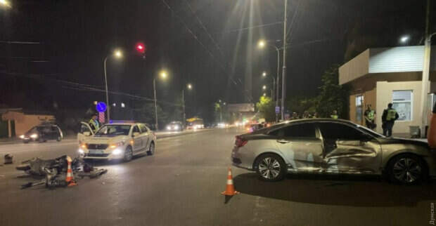 Стали известны новые подробности аварии с подростками на мопеде Как сообщает Думская, в автомобиле Honda Civic, в который врезался школьник на моторолере, находились двое сотрудников патрульной полиции. Авария случилась 25 августа на улице Святослава Рихтера угол Туристской. По предварительным данным, 13-летний парень выехал на перекресток на запрещающий сигнал светофора, из-за чего врезался в правый бок ехавшего навстречу автомобиля с полицейскими, который как раз совершал поворот.