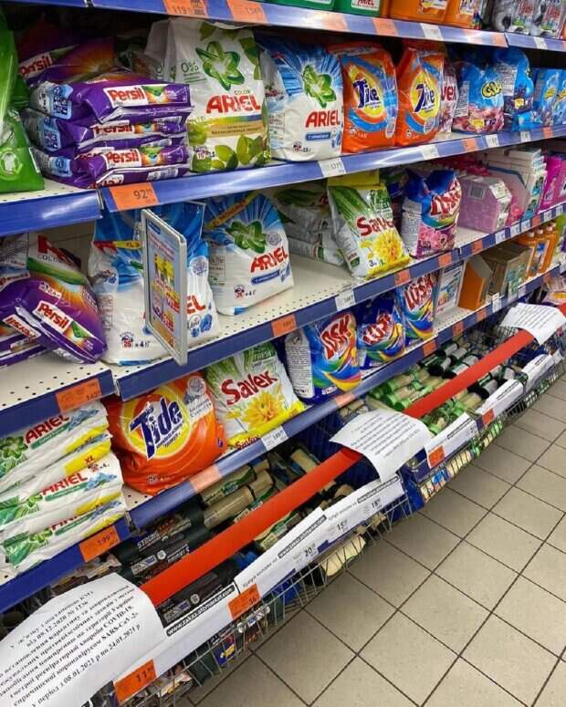 net Фотографии сделаны в отделах бытовой химии в супермаркетах. «АТБ дом мебели. В локдаун голову не помоешь, с порошками также», - пишут авторы. Обратим внимание, что в этот период запрещена работа всех образовательные учреждений, кроме детсадов и специальных учреждений. Не будут работать ТРЦ (но там смогут продавать товары первой необходимости: продукты, ветпрепараты и средства личной гигиены). Закроются всё рестораны, бары и кафе (но они смогут работать на вынос) Кроме того, под запретом учреждения развлекательной деятельности, все массовые мероприятия, фитнесс-клубы и бассейны. Запрещена деятельность продовольственных и непродовольственных рынков, кинотеатров, театров и цирков. Что разрешено: Общественный транспорт будет ездить, но с ограничениями "оранжевой зоны" – в салоне не должно быть больше пассажиров, чем количества сидячих мест и все должны быть в маске или респираторе, которые надеты и на нос и на рот; - Продавать товары первой необходимости даже в ТРЦ (продукты питания, средства личной гигиены, бытовую химию, лекарства и ветпрепараты); - Ресторанам, барам и кафе можно будет продавать блюда на вынос. В аэропортах разрешат работать ресторанным доставкам. В отелях будут работать рестораны с 06:00 до 11:00, но при этом доставлять заказ в номер клиента разрешат в любое время; - Отели и учреждения реабилитации продолжат работать с ограничениями; - Проводить официальные спортивные мероприятия, включенные в Единый календарный план физкультурно-оздоровительных и спортивных мероприятий Украины, но без зрителей. - Проводить спортивные мероприятия командных профессиональных спортивных клубов; - Предоставление финансовых услуг, деятельность финансовых учреждений и деятельность по инкассации. В том числе и перевозка валют. - Работа почтовых отделений; - Работа операторов медицинской и ветеринарной практики; - Работа автозаправочных станций, но без зон питания; - Работа технического обслуживания, ремонта транспортных средств; - Работа парикмахерских и салонов красоты по предварительной записи. Напомним, что одесситку с ковид "залечили" в больнице: "Не могла дождаться спасительной капельницы" Как писала Politeka, медик рассказала, как вирусная эпидемия душит Одессу: "Скорые и больницы захлебываются" Также Politeka писала, эпидемия забирает жизни одесситов одного за другим, новая статистика: "больше тысячи человек..."