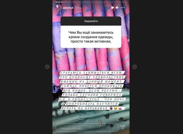 На своей странице в Инстаграм Анна, которая занимается дизайном одежды, решила ответить на вопросы своих подписчиков. Об этом пишет Politeka.net. В частности, она рассказала, чем занимает свои дни. «Стараюсь заниматься всем, что приносит удовольствие именно на данный момент. Сейчас хочется пробовать все новое, если честно. Только сегодня говорила, что хочу попробовать научится играть на барабанах», - призналась Андрийчук. Она также ответила на вопрос, о чем сейчас жалеет. «Никогда ни о чем не жалела», - коротко и откровенно написала Анна. Кроме того, Андрийчук рассказала, что обожает детей и давно мечтает о своих. Помимо рассказов о себе дизайнер также дала несколько советов подписчицам. Так, одна девушка спросила ее, как пережить расставание, если все еще любишь бывшего. «Может, это еще не конец? Позволяйте себе быть в этом состоянии и проживать его», - ответила Анна. Напомним, экс-жена Позитива без штанов покрасовалась у окна, удивив откровением: "Никогда не любила...". Как сообщала Politeka, Каменских с Потапом решили не сдерживать страсть на публике, тронув экс-жену Позитива: романтическое видео. Также Politeka писала, что Позитив прервал молчание о разводе после 13 лет отношений: "Я ее очень люблю".