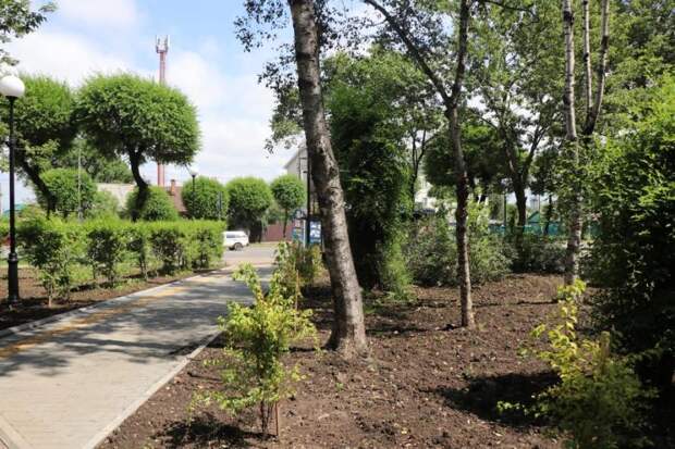 Местные жители уже могут отдохнуть на скамейках в тени деревьев