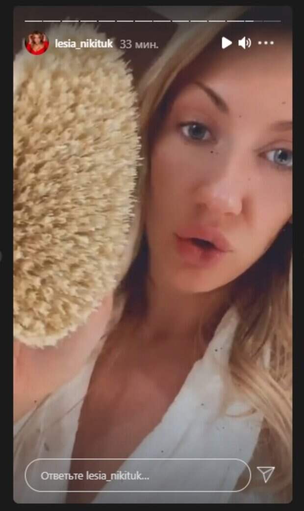 Девушка объявила о том, что идет "бороться с целлюлитом". "Иду сейчас в баню, на растирание льдом... Я максимально хочу держать свое тело в тонусе, поэтому раз в неделю, вы видели, я хожу и в японские чаны, а сейчас буду в хамаме. И буду растирать полностью свое тело льдом, а затем этой щеткой буду драить свои ягодицы, чтобы в них не было ни грамма целлюлита", - заявила Леся, показав "агрегат". Стоит отметить, массаж натуральной щеткой по сухому телу - давно известный метод для избавленийя от «апельсиновой корки». Этот массаж улучшает микроциркуляцию крови, обеспечивает ее приток к проблемным местам и облегчает расщепление клеток, из которых в основном состоит жировая ткань, оказывая дренажный эффект. Вот так Леся и рассекретила, почему выглядит круглый год подтянутой и бодрой. Ранее мы рассказывали, Никитюк, гостившая недавно в своем родном Хмельницком, по возвращении в Киев неожиданно выдала порцию "фе" о жизни в столице. "Вот жила я в Хмельницком полторы недели и горя не знала. И ела по пять раз в день. А тут в Киеве, в этих пробках... Первый раз салатик вон ем", - пожаловалась Леся на загруженность, что даже покушать некогда. Напомним, Сумская, Никитюк или Ефросинина: кто скрывается под "Маской" Козы, украинцам раскрыли подробности Как сообщала Politeka, Леся Никитюк распахнула пиджак, приковав взгляды к кружевам: "Слегка шальная императрица" Также Politeka писала, что "Холостячка" Никитюк после колечка на пальце показала своего Константина: "Мы решили. .."