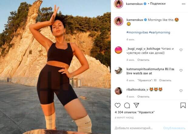 33-летняя украинская певица Настя Каменских взбудоражила публику новым фото Как передает Politeka.net, красотка опубликовала свежий снимок в своем микроблоге в Инстаграм, на котором предстала после утренней тренировки. Так, звезда показала соблазнительную фируру в коротком черном топе и такого же цвета велосипедках.