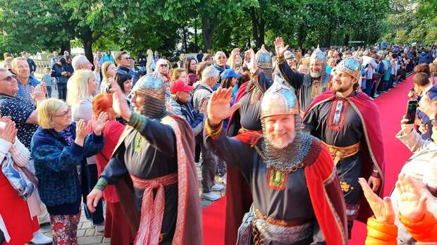 В. Луночарского вышли как мэтры театра и кино, так и юные дебютанты. Среди участников «Золотого витязя» — представители порядка 20 государств. В Крым, находящийся под санкциями Запада с 2014 года, приехали актеры и режиссеры в том числе из Германии, Сербии, Индии, Таджикистана, Украины, Белоруссии. По красному полотнищу прошли и актеры и режиссеры из Донбасса. Был замечен и военный корреспондент, освещающий ход военной спецоперации российской армии на Украине, Семен Пегов. Гостей кинофорума поприветствовал почетный гость кинофестиваля, который пережил Великую Отечественную войну, — актер-ветеран театра имени Моссовета, народный артист России Николай Лебедев, сыгравший в фильме «Евдокия». Среди участников кинофестиваля народные артисты России: Николай Бурляев, Николай Лебедев, Александр Михайлов, Александр Пашутин, Дмитрий Певцов, Игорь Скляр, Борис Щербаков, народный артист Республики Белоруссии — Владимир Гостюхин, народный артист Украины — Михаил Голубович (ЛНР). В Севастополь приехали актеры театра и кино: из России: Ольга Будина, Инга Шатова, Светлана Копылова, Анастасия Макеева, Александр Песков, Сергей Варчук и др; из Сербии: Лазарь Ристовски, Ивана Жигон. С 22 по 28 мая в Севастополе проходит XXXI Международный кинофорум «Золотой витязь» под девизом «Zолотой Vитязь — против нацизма». Читайте также: На XXXI кинофоруме «Золотой витязь» в Севастополе покажут 190 фильмов
