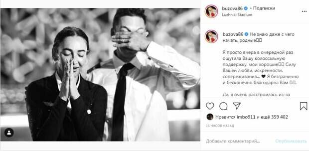 Позже в микроблоге Бузова рассказала, что она чувствовала в тот момент. "Да, я очень расстроилась из-за оценок, мне было обидно, я этого и не скрывала, вернее я не поняла, почему именно за наш «Экипаж» такой низкий балл, мы очень сильно старались и готовились, но так решили наши судьи, и мы с ними не оспариваем оценки никогда... Я увидела реакцию всех людей, кто смотрел эфир, когда я почувствовала насколько Вы разделили мои эмоции по этому номеру... Я поняла, что вообще всё остальное не важно, да хоть вообще ноль поставили бы нам!", - призналась Бузова, бросив вызов судьям. Певица также плакала от счастья, когда они завершили номер на льду и после выступления "подскочили" даже тренеры. "Вы просто посмотрите по вырезкам из эфира, как вскочили Максим и Илья от радости, что прокат получился, что надо, как я плакала от счастья, что не подвела ни себя, ни партнёра, ни тренерский состав - и откатала по максимуму. Мы думали, что наконец сделали эти заветные 6.0. Радовались все, как дети. Поэтому наверное так и расстроились, когда объявили результаты. В общем, мы идём дальше, работаем по-максимуму. Спасибо вам ещё раз за эту любовь и доброту, которую Вы мне дарите, вчера чувствовалось наше единство! ", - подытожила российская звезда в своем микроблоге. Пользователи мгновенно отреагировали на публикацию. Кто-то поддержал Ольгу Бузову после выступления, но были и такие комментаторы, которые заявили, что судьи правильно оценили номер пары. "Жури виднее как оценить,надо достойно проигрывать ,и ненадо было под свою песню кататься,ты не мисс вселенная", "Ну надо достойно проигрывать, ну не был номер на 6.0, не был, впечатление просто придала песня Киркорова, вот и всё, и все это прекрасно понимают, но почему-то продолжают лизать одно место Бузовой и Филе", "Как бревно", "Никто не выкладывает свои выступления, а Оля опять все напоказ", "Не плачь, ты лучшая! Ты большая умница и молодец! Ты настоящая!", "Вы очень красивая пара! И вы лучшие!!! Жюри были очень необъективны!!! Болею за вас!", - написали пользователи в комментариях. Напомним, что Бузова забросила ноги на спортивного мачо и очаровала упругими ягодицами. Как Politeka писала, что дерзкая Бузова в кожаном топике заинтриговала новым хитом. Также Politeka сообщала, что возбужденная Бузова еле удержала свои цветочки в руках.