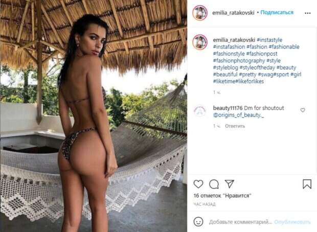 Поэтому в Сети решили вспомнить, какой она была до беременности, показав ее самые обворожительные образы. Так, на первом опубликованном кадре Ратаковски предстала в микробикини леопардовой расцветки. Девушка выбрала самый впечатляющий ракурс для фото, повернувшись к камере спиной, тем самым дав фанатам возможность насладиться своей упругой красотой. С влажными волосами, на фоне плетеного гамака под навесом из бамбука, Эмили томно кинула взгляд через плечо, слегка приоткрыв ротик. Вид сзади, конечно, завораживает, но спереди также есть, чем полюбоваться. На следующем кадре Ратаковски предстала в другом бикини - оранжевого оттенка с необычным лифом-топиком, соблазнительно сидевшем на ее аппетитных прелестях. Модель позировала на высоте, оперевшись на стекляный бортик, натянув при этом плавки до предела. Ранее мы рассказывали, в Сети обсуждают фото Эмили, на котором она показала домашний и уютный образ, позируя в постели. Модель распахнула белую рубашку и продемонстрировала спелые "дыньки". Благодаря отсутствию макияжа и укладок, кадр вышел очень удачными и натуральным. Один из пользователей под постом также отметил: "Это фото сплошная нежность". Напомним, Ратаковски без белья и стыда дала заглянуть себе под пиджак А еще Politeka писала, что Эмили Ратаковски устроила шальной отдых на яхте в черном бикини Также Politeka сообщала, что Эмили Ратаковски устроила жаркие шалости в модном мини-бикини